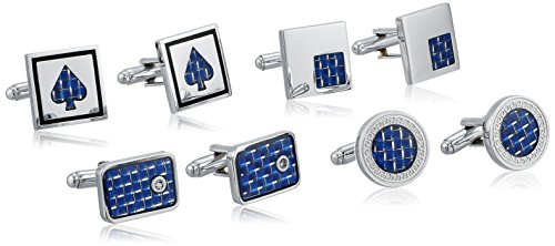 BMC offer BMC 4 Pair Mix Shaped Sapphire Blue Carbon Fiber Pattern Decorated Mens Silver Metal Cufflink Set. This awesome product currently limited units, you can buy it now for £20.48, You save -